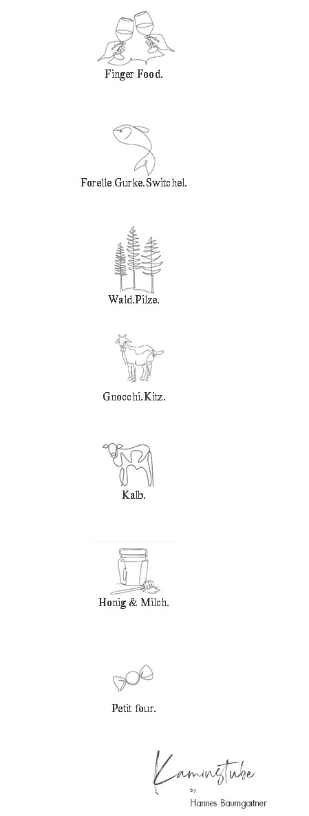 Ein Menü. 7 Gänge. Zusammengestellt aus den besten Zutaten die unsere Umgebung hergibt. Von kleinen lokalen Produzenten hergestellt. Von Bauern die ihre Tiere mit voller Leidenschaft halten. Inspiriert von Wald und Wiese. Mit Kräutern und Gemüse direkt aus dem Lechnerhofgarten. Weiterverarbeitet mit Liebe zu einem Menü das begeistern wird.