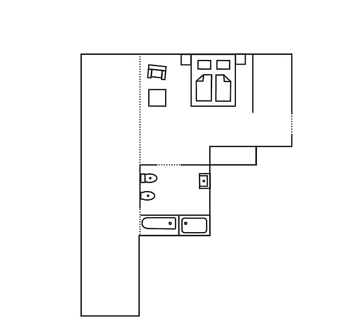 Das Zimmer ist in Zirbelholz eingerichtet und besteht aus einem geräumigen Wohn- und Schlafraum, einem modernen großzügigen Badezimmer mit Erlebnisdusche, einer Whirl-Badewanne und WC.