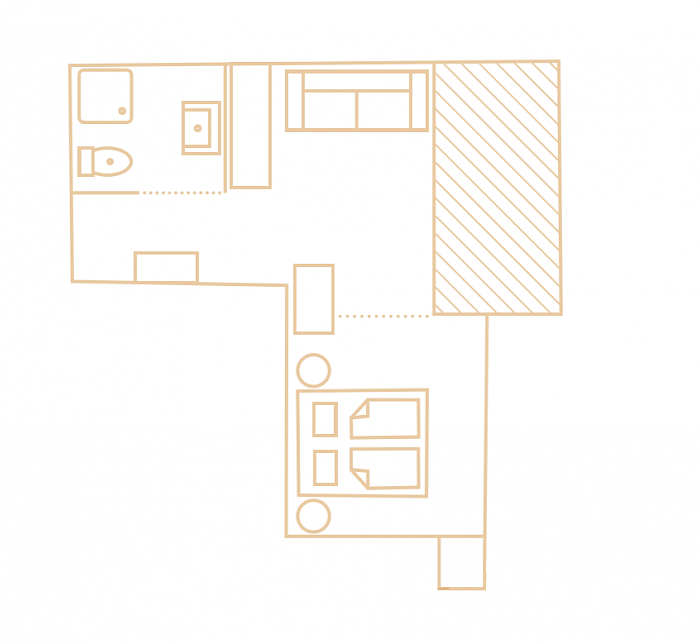 Das Schlafzimmer kann mit einer Schiebetür vom Wohnraum abgetrennt werden. Vom Bett aus haben Sie einen wunderbaren Blick zum Kronplatz mit Nachmittagssonne. Im Wohnzimmer finden bis zu zwei weitere Personen Platz. Das Badezimmer ist mit einer großzügigen Dusche und WC ausgestattet.